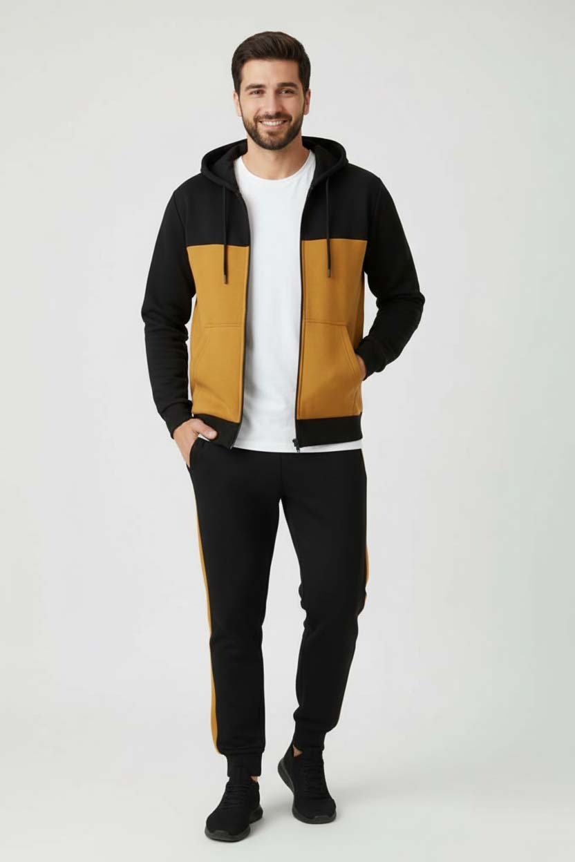Winter 3Pcs Men Cotton Fleece Plain Zipper Track Suits